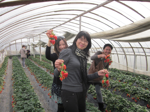 大約下午一點在農莊吃過午餐后,大家才陸續的進入草莓棚??粗锏乩?,小如子彈、大如拇指的草莓,忍不住垂涎欲滴。同事們都很興奮,彎著腰,輕巧地采擷,雖然果實并非個個飽滿,但笑容仍蕩漾在臉上,這場面貌似是一幅畫,染著這個春意正濃的季節。在夕陽西落前,我們便離開農莊前往天一豪食匯,共享饕餮大餐。