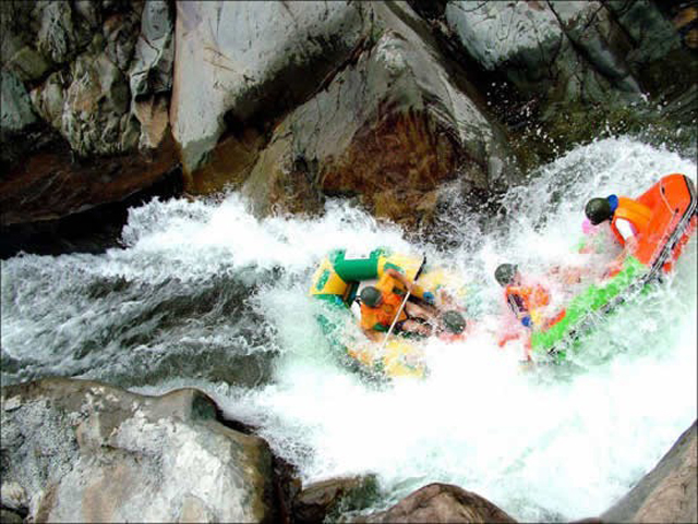 一路上同事們歡聲笑語,到達(dá)武義牛頭山時(shí)已近晌午,2.5小時(shí)的車程早已讓同事們都饑腸轆轆。在享受完牛頭山休閑山莊的農(nóng)家土菜后,車子沿著蜿蜒崎嶇的山路向目的地神牛谷進(jìn)軍。繞過險(xiǎn)峻的地勢(shì),到達(dá)目的地時(shí),大家早已迫不及待的換下衣服拿好裝備,想體驗(yàn)“浙中第一漂”的驚險(xiǎn)與刺激。席間,老天的一場突如其來的大暴雨,特別的慰問了我們一直在崗位上兢兢業(yè)業(yè)的賽爾同事們。