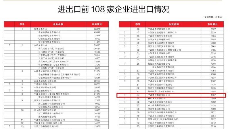 一季度寧波進出口108強榜單發(fā)布,我集團排名大幅上升