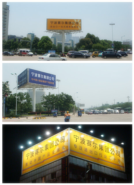 新增的戶外廣告位,選擇了視覺效果較佳位置,是商務人群密集和必經之處,在設計版面上較之前更簡潔大氣,大大提高了集團曝光率知名度,展現出了集團的品牌檔次和綜合實力,將在中國小商品城廣大供應商以及前來義烏實地采購的國際買家群體心中,樹立起我們賽爾集團(SELLERS UNION GROUP)非常正面積極和性感領先的服務品牌形象。