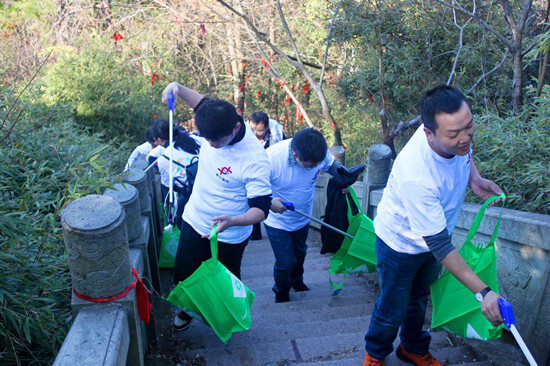 早上9點(diǎn),一行30人抵達(dá)位于義烏后宅的德勝巖,開始爬山健身、清潔環(huán)境之旅,希望以實(shí)際行動宣揚(yáng)健康、環(huán)保理念,踐行綠色生活方式。一路上,大家一邊觀賞冬日美景,一邊撿拾登山石階上和兩旁樹木叢中的煙頭、塑料袋、礦泉水瓶等難以降解的生活垃圾,努力還大自然一片潔凈。