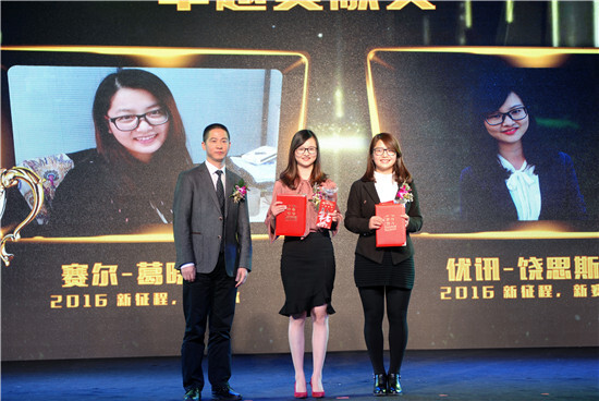 大會(huì)首先表彰了集團(tuán)2015年度優(yōu)秀員工。集團(tuán)運(yùn)營(yíng)決策委員會(huì)分別為每位獲獎(jiǎng)?wù)哳C發(fā)了獎(jiǎng)杯、證書(shū)和獎(jiǎng)金。賽爾國(guó)貿(mào)葛曉青、優(yōu)訊進(jìn)出口饒思斯憑借優(yōu)異業(yè)績(jī)摘得集團(tuán)“卓越貢獻(xiàn)獎(jiǎng)”;賽爾國(guó)貿(mào)沈孝蘭等34人榮獲集團(tuán)“優(yōu)秀業(yè)務(wù)獎(jiǎng)”;集團(tuán)財(cái)務(wù)管理部陳萍等19人榮獲集團(tuán)“最佳服務(wù)獎(jiǎng)”;賽爾國(guó)貿(mào)袁勝男等轉(zhuǎn)正一年內(nèi)表現(xiàn)突出的15位新員工代表榮獲集團(tuán)“新星獎(jiǎng)”。70余位獲優(yōu)人員是優(yōu)秀賽爾人的杰出代表,讓我們向優(yōu)秀致敬!為佳績(jī)喝彩!