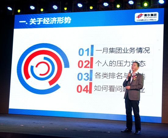 表彰結(jié)束后,徐平炬總裁向全體與會(huì)同事分享了他一年來(lái)的所思所悟。徐總從當(dāng)下經(jīng)濟(jì)形勢(shì)入手,在企業(yè)家精神、公司競(jìng)爭(zhēng)力、品牌傳播與自媒體建設(shè)、投資布局、薪酬結(jié)構(gòu)、互聯(lián)網(wǎng)影響等方面作了簡(jiǎn)明扼要的闡述。雖然外貿(mào)行業(yè)面臨嚴(yán)峻形勢(shì),但賽爾集團(tuán)仍然在2015年實(shí)現(xiàn)了穩(wěn)健發(fā)展,2016年1月份更以近7000萬(wàn)美元?jiǎng)?chuàng)下月度出口額歷史新高,對(duì)于2016年企業(yè)發(fā)展,有壓力但更有信心。徐總說(shuō),每個(gè)企業(yè)都需要敢為人先、勇于開(kāi)拓、能擔(dān)當(dāng)?shù)钠髽I(yè)家精神,當(dāng)前集團(tuán)各子公司總經(jīng)理都是行業(yè)認(rèn)可的優(yōu)秀企業(yè)家,各子公司業(yè)務(wù)部門(mén)負(fù)責(zé)人在某種意義上也是企業(yè)家,賽爾集團(tuán)還要在內(nèi)部培養(yǎng)出更多具有企業(yè)家精神的團(tuán)隊(duì)領(lǐng)導(dǎo)者,從而推動(dòng)企業(yè)的長(zhǎng)遠(yuǎn)健康發(fā)展。當(dāng)前,集團(tuán)競(jìng)爭(zhēng)力主要體現(xiàn)在獨(dú)特的經(jīng)營(yíng)模式、綜合的軟實(shí)力、集團(tuán)化的高效運(yùn)作和較強(qiáng)的行業(yè)影響力,這種差異化的競(jìng)爭(zhēng)力仍需堅(jiān)持并進(jìn)一步鞏固提升。徐總表示,近年來(lái)集團(tuán)先后投資成立了優(yōu)貿(mào)供應(yīng)鏈、環(huán)宇港通和優(yōu)游國(guó)旅,探索了出口跨境電商B2C業(yè)務(wù),搭建了在線外貿(mào)商務(wù)平臺(tái)“賽爾在線”,下階段將著手布局進(jìn)口跨境電商B2B業(yè)務(wù),這些投資都是圍繞外貿(mào)主業(yè)所作的延伸布局和有益探索,這些投資和布局必將進(jìn)一步提升集團(tuán)的外貿(mào)綜合服務(wù)能力。徐總還與大家分享了互聯(lián)網(wǎng)對(duì)當(dāng)今這個(gè)時(shí)代和企業(yè)發(fā)展影響的看法,并建議大家低配人生和物質(zhì)要求,努力工作,提升自己,跟上公司發(fā)展的步伐,在上升通道中實(shí)現(xiàn)人生的追求。