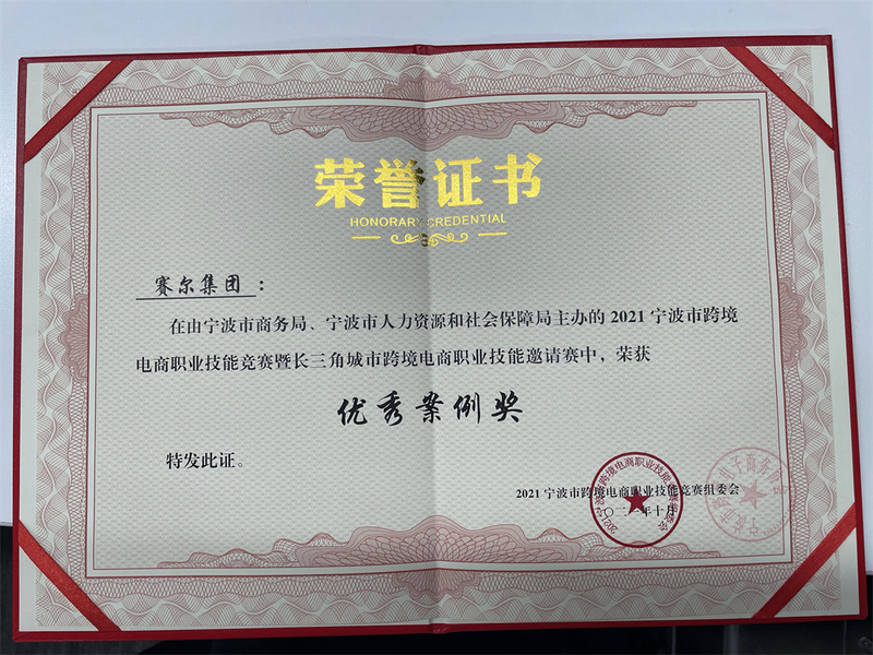 本次大會設(shè)置五大獎項(xiàng),用于支持和鼓勵我市跨境電商企業(yè)的快速發(fā)展和良好成果。賽爾集團(tuán)憑借自身在跨境電商業(yè)務(wù)領(lǐng)域的提前布局和探索實(shí)踐取得了持續(xù)增長,根據(jù)項(xiàng)目評委組對集團(tuán)跨境電商業(yè)務(wù)和人才的全面評估,授予集團(tuán)由寧波市商務(wù)局、寧波市人力資源和社會保障局共同頒發(fā)的跨境電商優(yōu)秀案例獎。