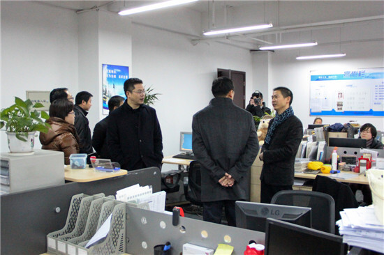 徐平炬董事長向陳關長介紹集團的辦公區(qū)域