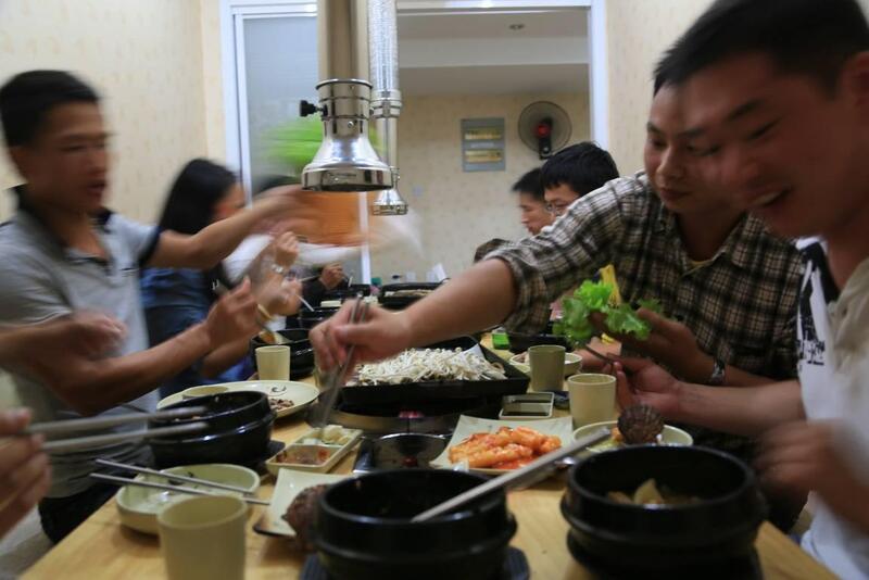 下車了,到站了,韓國烤肉果斷走一個,席地而坐,吃著泡飯,烤著肉,感受著淡淡的韓國風(fēng)情——一天的行程又要結(jié)束了!