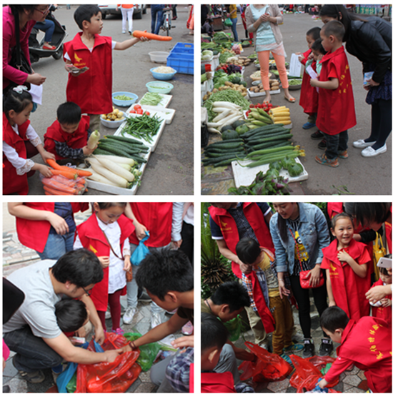 匯合后,村長把10個小朋友分為紅、黃、藍(lán)三隊并選出隊長。接著村長分發(fā)任務(wù)卡,小朋友們將根據(jù)任務(wù)卡開始今天的第一個艱巨的定向任務(wù)——獨自購買食材和尋找野炊道具。在楂林菜市場里,這些小朋友們吸引了眾多過路者的目光,每組小朋友都在認(rèn)真挑選食材,詢問價格,和老板們討價還價,像個小大人。在村長的裁判下,紅隊小朋友表現(xiàn)最棒,買菜最多花錢最少。