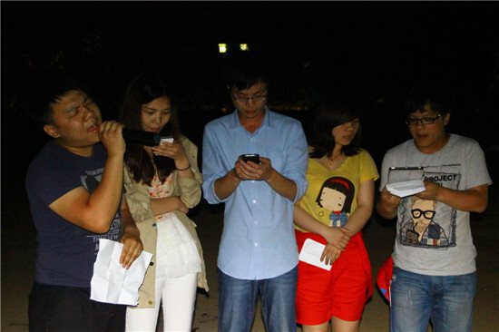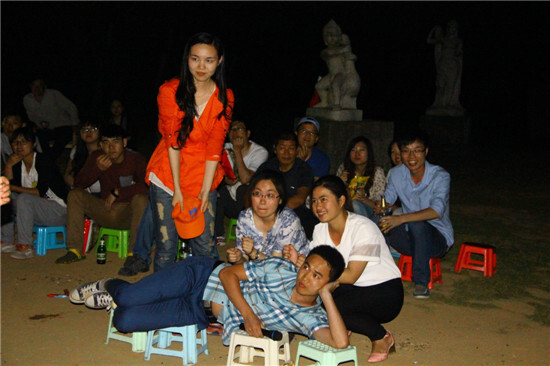籃球賽結束后,迎來的是一頓菜多肉少、僧多粥少的晚餐,之后就是大家的自由活動時間了,在那風高黑夜,有人沿著山路找尋著傳說中的南北湖,有人干脆回房牛牛了,也有人玩起了殺人游戲。