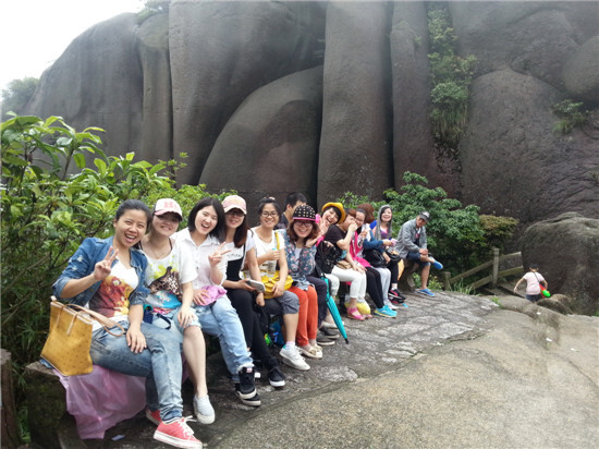 天公似乎也很賞臉,18日太姥山行至“高潮”,雨便停了,沒有雨衣和雨傘的束縛,小伙伴們開始到處撒歡,玩得十分盡興。工作中的壓力,生活中的煩惱在這一刻全都拋之腦后,剩下的只有放松和愉悅,所以人們常說:“旅游是解壓的利器。”