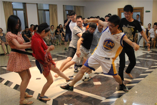 沒(méi)有嚴(yán)苛的比賽規(guī)則,偶爾的“黑哨”讓這個(gè)小球場(chǎng)充滿(mǎn)了大魅力。大家一邊起哄一邊手忙腳亂踢球,突然進(jìn)球,全場(chǎng)爆發(fā)一陣熱烈歡呼。運(yùn)動(dòng)真好,讓彼此沒(méi)有一點(diǎn)距離。原本還擔(dān)心單證組出的女子足球會(huì)稍顯遜色,哪知道巾幗不讓須眉!