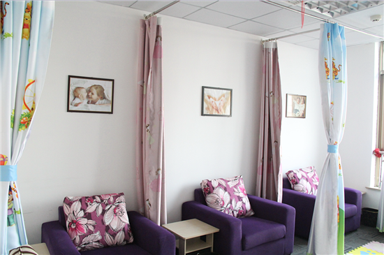 母嬰室設置在義烏運營中心四樓,里面配備有單人和雙人沙發、茶幾等,為了賽爾媽媽們吸奶的私密性,每個沙發都有簾子相隔;茶幾方便放置一些個人用品。