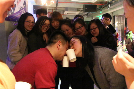接下來是大冒險游戲,第一輪是南美非的徐總背著財務美女去陳總面前敬酒,來來回回背了不知道多少次,還好財務美女的身材好,不然很擔心徐總的體力,哈哈哈。第二輪南美非的楊奇扭屁股寫字,扭了3次后單證奚姐終于猜出來了,棒棒噠。第三個游戲是水杯接龍,領導一隊,員工一隊,都是4男4女錯開站,嘴咬著杯子,倒水給下一位,最后水剩的最多的獲勝。為了增加游戲樂趣,領導說,要是他們輸了,除了游戲獎品,每個領導在群里發300元紅包給全公司的人。在紅包的刺激下,員工隊拼盡全力,最終完勝領導隊,群里下起了紅包雨,到處都是搶到紅包的歡呼聲。期間還穿插著各種抽獎環節,參加6次小年夜都沒拿到過獎品的楊奇終于人品爆發,抽到了一等獎,激動地把陳總抱了起來。