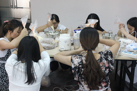8月28日是中國傳統(tǒng)節(jié)日——七夕節(jié),賽爾學院特別推出七夕特輯《愛の木糠杯》,由寧波丁潔瓊和義烏田丹丹兩位多才多藝的講師為大家開課。她們早早地就準備好了木糠杯的食材:消化餅、奧利奧餅干、藍風車奶油、搟面杖、電動打蛋器、裱花袋……這是賽爾學院第一次開設純手工的課程,準備的東西雖多,但絲毫不影響兩位講師的積極性。
