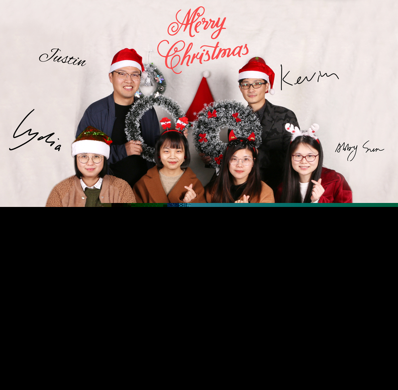 我們利用圣誕花環(huán)、圣誕樹、圣誕襪、圣誕擺件等各類節(jié)日裝飾品,以白色絨布為背景,打造了一個溫暖喜慶的布景。隨后按照公司各個小組的順序,以重要客戶為對象,進行不同的序列組合拍攝團體照。另外,我們還收集了每一位業(yè)務(wù)員的英文電子簽名,標注在每個人照片旁邊,以便給客戶留下更深刻的印象。拍完照之后,我們在上面加上了祝福語和親筆電子簽名,最后制作出了一張張別出心裁的精美圣誕節(jié)專屬賀卡。