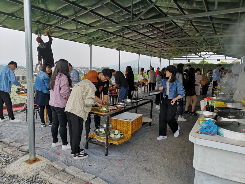 早上8點半,大家在公司集合并乘大巴前往武義桂族灣。經過2個小時的車程,終于抵達目的地。一下車大部隊就在場地負責人的帶領下前往土灶。按照提前分好的小組,大家分頭開始準備午餐。為了讓同事們嘗到自己的拿手好菜,每個人在此刻都化身成了中華小當家。由于一些大神的菜品過于優秀,一出鍋就遭到哄搶,原本設計的猜菜名環節也被省略了。