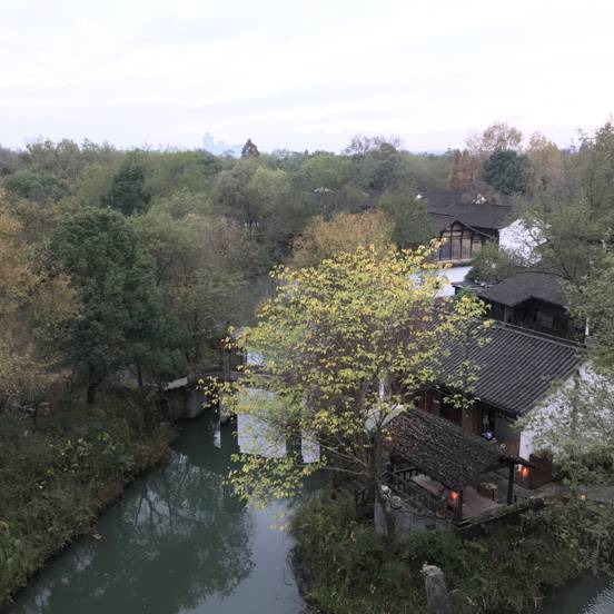 不知不覺就到了午飯時間,大家選擇了一家有當地味道的杭幫菜飯店,邊吃邊聊,氣氛甚好。填飽肚子后,飯后消食當然也很重要。我們又上了一處高塔,欣賞到整個西溪濕地的美景。