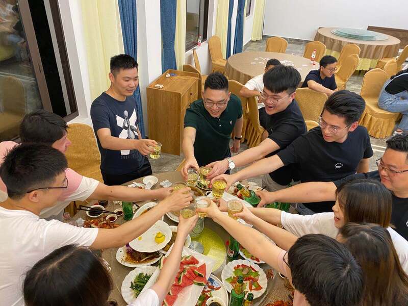 游戲結束后,大家上后山采摘楊梅,邊摘邊嘗。最后,筐子滿了,肚子也飽了。采完楊梅下山,燒烤架早已支起,烤串滋滋泛著油,大家圍著烤架邊吃邊聊邊玩。晚飯是地道的農家菜,大家舉杯共同祝愿綠時越來越好。