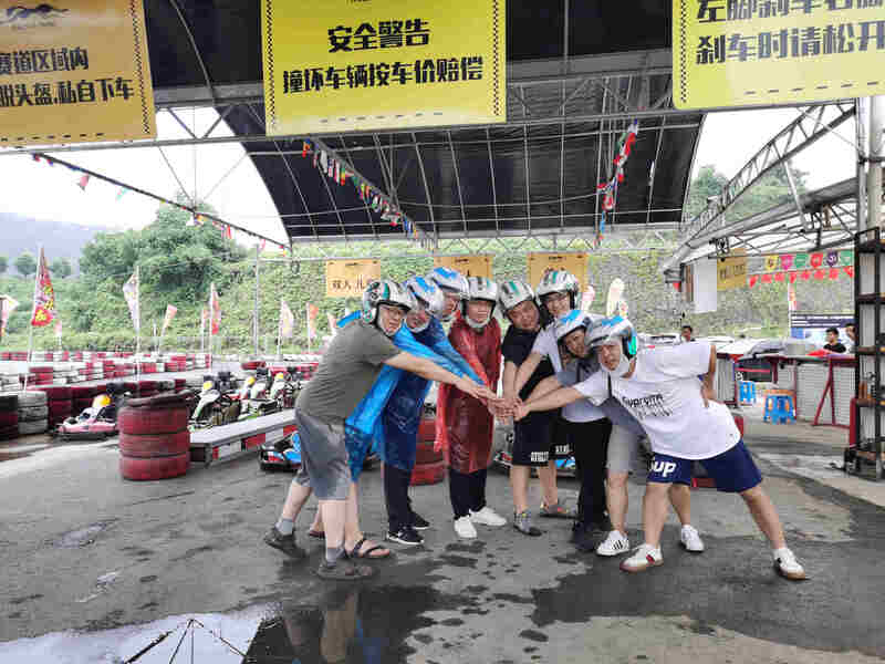 與此同時,義烏技術部也開啟了他們驚險刺激的山地卡丁車之旅,泥漿四射的賽道給本就講究速度的賽車運動平添了一份狂野;只懂游戲的宅男在高低起伏的越野賽道中徹底釋放出了激情!