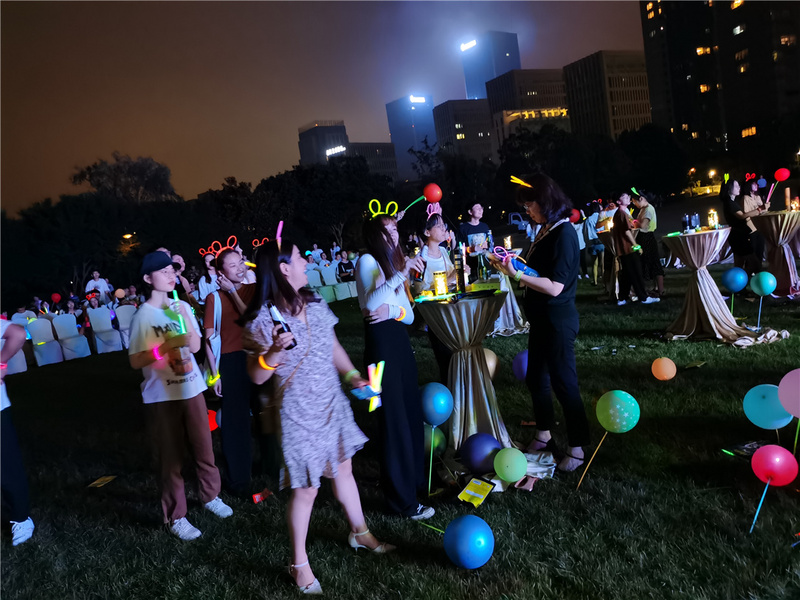晚宴上,公司表彰了上半年優(yōu)秀團(tuán)隊(duì)以及優(yōu)秀個(gè)人。 晚宴過(guò)后的雨中音樂(lè)節(jié)將氣氛推向了高潮,氣球燈光,啤酒炸雞,性感MC,爆炸電音,雨中起舞,氣氛正好。