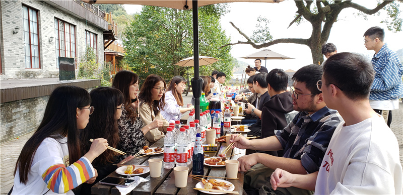 飯后自然少不了娛樂項目。大型戶外KTV讓大家發(fā)現(xiàn)貔貅組人才輩出,各種隱藏的歌神們被挖掘出來。歡唱結(jié)束后,大家各自分成幾個小組,開始進(jìn)行劇本殺、UNO、斗地主等各種緊張刺激的桌游。