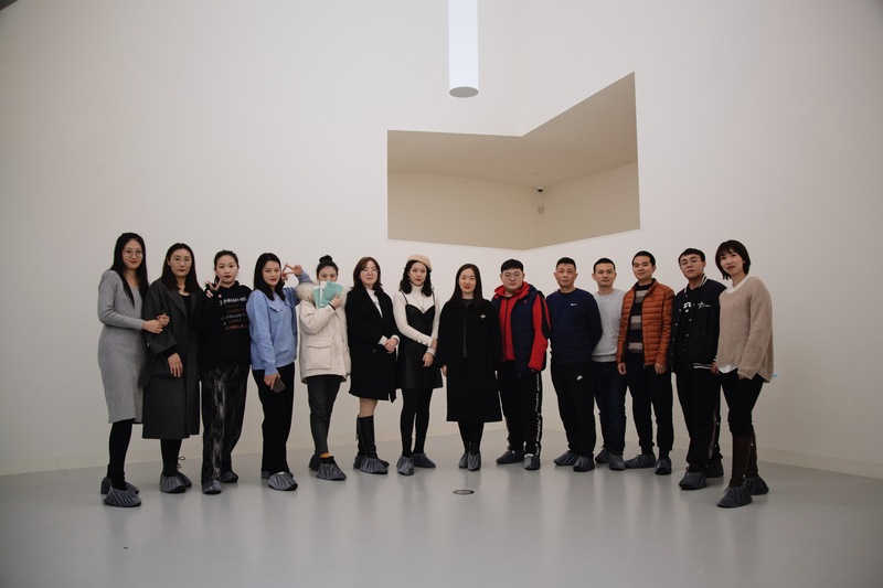 午餐過后,行政部一行來到東錢湖畔的華茂藝術教育博物館。該博物館是一座以“藝術教育”為核心的主題博物館,為葡萄牙建筑大師阿爾瓦羅•西扎設計的“黑色系”作品。館內曲徑通幽,交錯往復,以小見大,營造出芥子藏須彌般的空間效果。大家參觀了華茂藝術教育博物館的經典館藏作品,如羅工柳的《郁郁蔥蔥》、劉開渠的《蔡元培坐像》、提香•韋切利奧的《馬爾卡托尼奧•莫羅西尼肖像》、徐悲鴻的《孔廟》、林風眠的《少女》、李叔同的書法、賀綠汀的音樂手稿等近200件作品,或取景拍照打卡,或聆聽講解,陶冶藝術情操。
