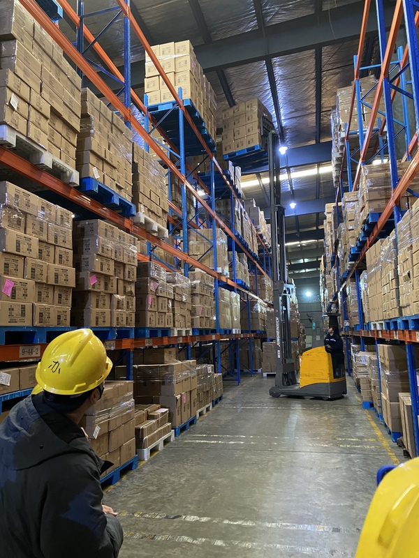 在倉庫各部門領導的帶領下,大家首先參觀了倉庫卸貨區。當時正有工人在卸貨,叉車司機將每一拖貨整齊地擺放在貨架上。隨后我們參觀了倉庫的裝柜區,里面擺放著好多個已經裝完和正在裝的柜子。走近正在裝的集裝箱中,老師給我們講解了有關于集裝箱的知識。最后,我司同事和倉庫的領導們圍坐在一起,大家討論了很多問題,解答了很多同事心中對于倉庫操作流程的疑惑。