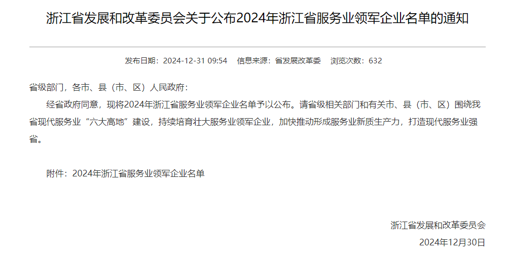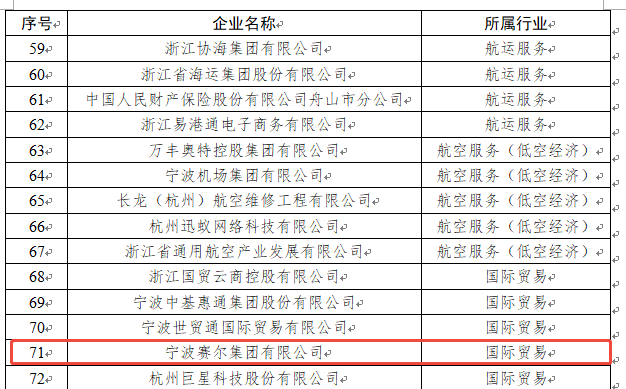 近日,浙江省發(fā)改委發(fā)布了2024年浙江省服務(wù)業(yè)領(lǐng)軍企業(yè)名單,寧波賽爾集團(tuán)有限公司榜上有名。