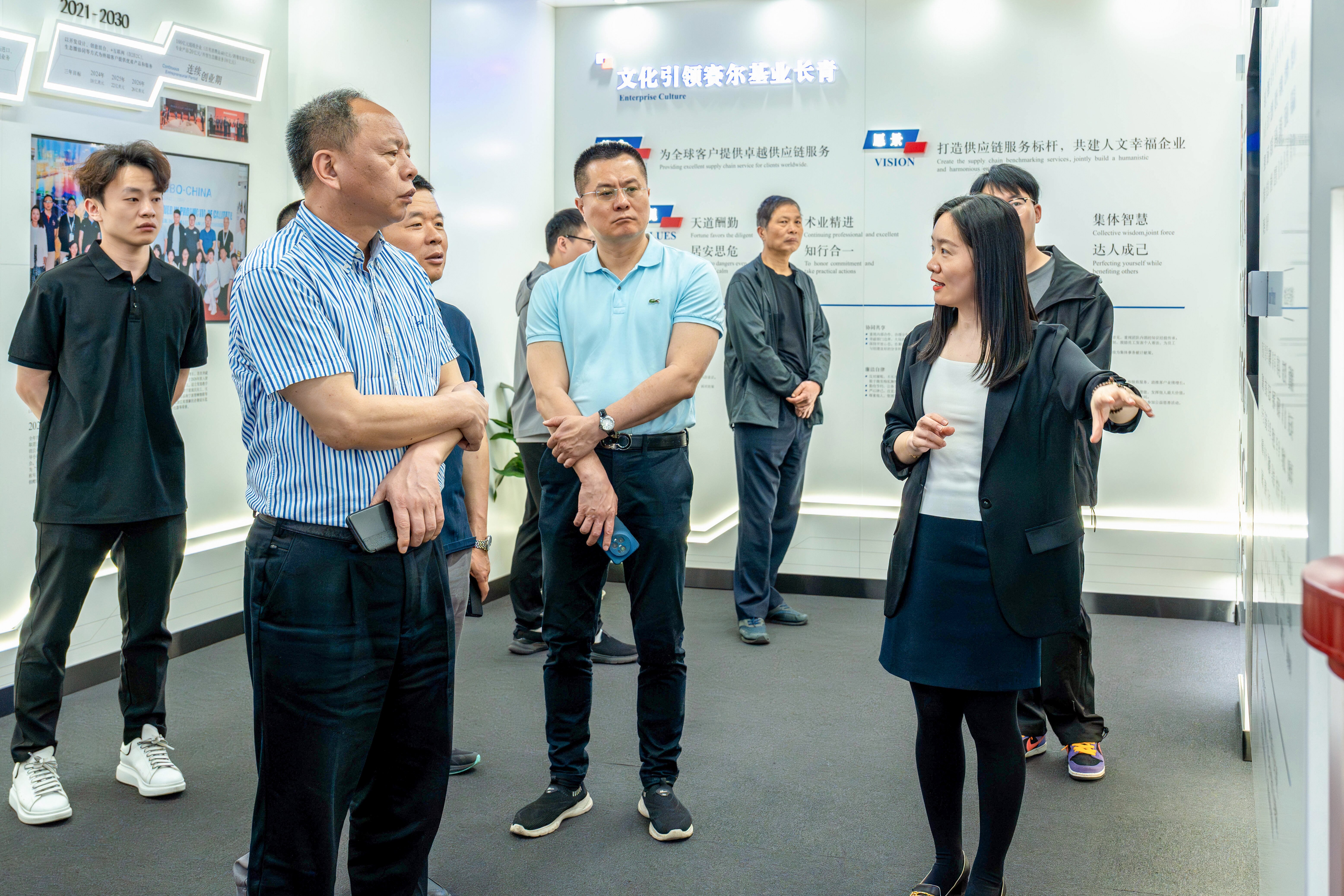4月16日上午,由洛江區委統戰部、區商務局、區工商聯及轄區重點企業代表組成的政企代表團一行,蒞臨賽爾集團參觀考察。洛江區委統戰部部長、區“洛江優品出海”指揮部指揮長曾國富率隊,區商務局局長林志斌、區工商聯黨組書記林永和等領導及十余位企業家代表共同參與,集團行政副總方芳熱情接待。