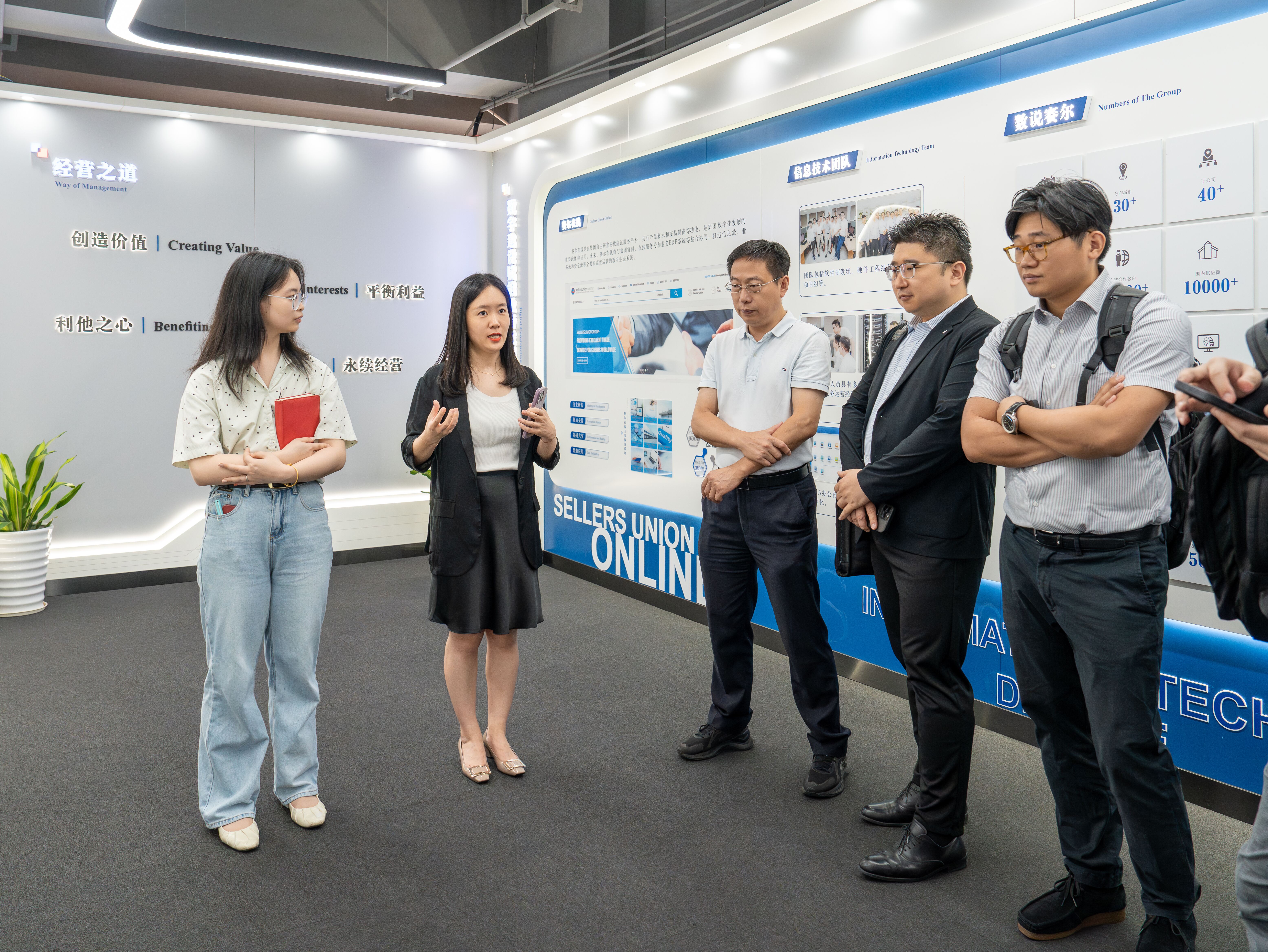 活動(dòng)伊始,賽爾集團(tuán)行政部副總經(jīng)理方芳帶領(lǐng)日本采購商代表團(tuán)參觀集團(tuán)企業(yè)文化展廳,詳細(xì)了解企業(yè)發(fā)展歷程、核心業(yè)務(wù)及產(chǎn)品優(yōu)勢。集團(tuán)日語翻譯配合協(xié)助,確保交流順暢。
