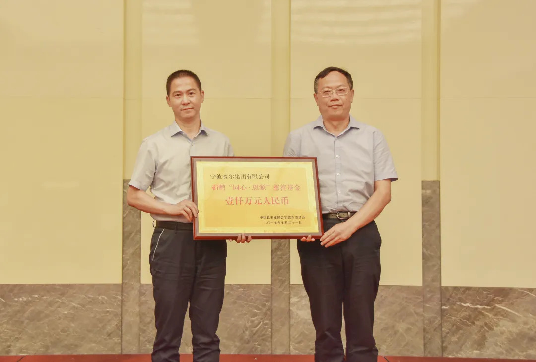2016年1月,向寧波海上絲綢之路研究院捐資100萬元。集團“賽爾親風基金”再次捐贈10萬元用于關愛江東區失獨家庭。
